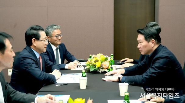 서울복지타임즈 이재연 기자 | 김영록 전라남도지사가 3일 서울 코엑스에서 열린 ‘SK AI SUMMIT 2025’에서 최태원 SK그룹 회장을 만나 SK-오픈AI 합동 ‘글로벌 AI 데이터센터’ 구축 협력 방안을 논의했다.