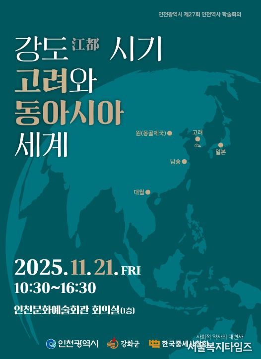 서울복지타임즈 이재연 기자 | 강화군은 인천광역시 및 한국중세사학회와 공동으로 오는 11월 21일 인천문화예술회관 회의실에서 ‘강도(江都) 시기 고려와 동아시아 세계’를 주제로 ‘인천역사 학술회의’를 개최한다.