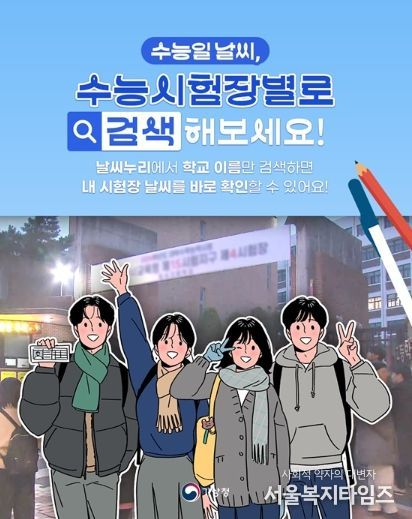 서울복지타임즈 이재연 기자 | 날씨누리에서 학교 이름만 검색하면 내 시험장 날씨를 바로 확인할 수 있어요!