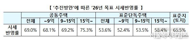 4 넷째, ’26년도 목표 시세반영률은 금년 수준과 동일하게 유지하며, 공시가격의 균형성도 점진적(전년도 공시가격의 1.5% 이내)으로 제고한다.