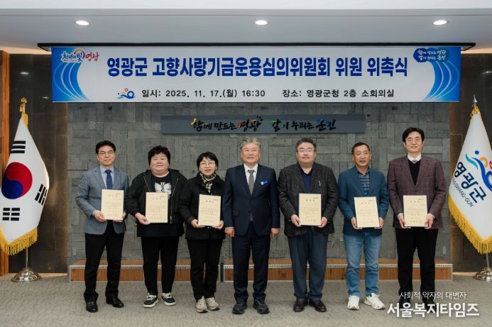 서울복지타임즈 이재연 기자 | 영광군은 11월 17일 군청 소회의실에서 임기가 새로 시작되는 영광군 고향사랑기금운용심의위원회 위원 6명에 대해 위촉장을 수여했다.