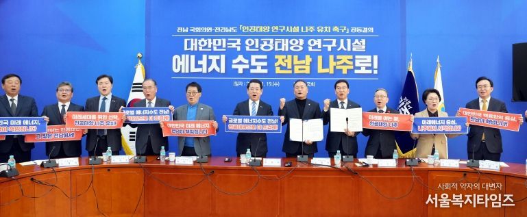 서울복지타임즈 이재연 기자 | 전라남도는 19일 국회에서 지역 현안 해결과 인공태양 연구시설 유치를 위해 ‘전남 국회의원-전남도 정책협의회’를 개최하고, 이어 광주 국회의원들과도 공동결의문을 발표하며 한목소리로 유치 결의를 다졌다고 밝혔다.