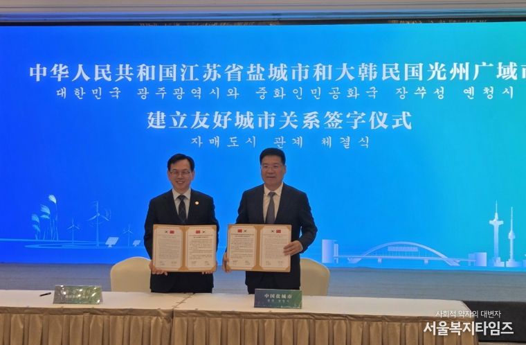 서울복지타임즈 이재연 기자 | 광주시가 중국 옌청시와 자매도시 협정을 체결했다. 이에 따라 옌청시는 광주의 여덟번째 자매도시가 됐다.