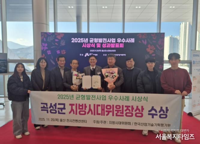서울복지타임즈 이재연 기자 | 전남 곡성군은 지난 20일 대통령직속 지방시대위원회가 주최한 ‘2025년 지역균형발전사업 우수사례 시상식’에서 우수사례 추진 기관 표창(지방시대위원장상)을 받았다고 21일 밝혔다.