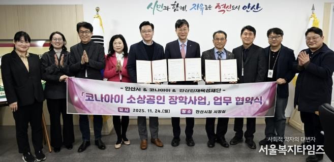 서울복지타임즈 이재연 기자 | 안산시는 지난 24일 코나아이 및 안산인재육성재단과 ‘코나아이 소상공인 장학사업’ 추진을 위한 3자 협약을 체결했다고 25일 밝혔다.