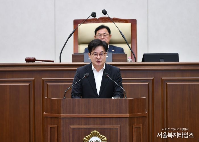 서울복지타임즈 이재연 기자 | 김병수 김포시장이 1일 김포시의회 제264회 임시회에서 ‘2026년도 예산안 제출에 즈음한 시정연설’을 통해 “시민이 상상하는 내일, 김포가 현실로 만든다. 성과로 증명하고 비전으로 미래를 열겠다”고 각오를 밝히며 2026년 민선8기 4년차 시정이 ‘교통’, ‘수변문화’, ‘야간정책’, ‘새롭게 꿈꾸는 교육’이라는 4대 핵심 키워드를 중심으로 ‘통하는 70도시 우리김포’를 완성하기 위해 모든 역량을 집중하겠다고 전했다.