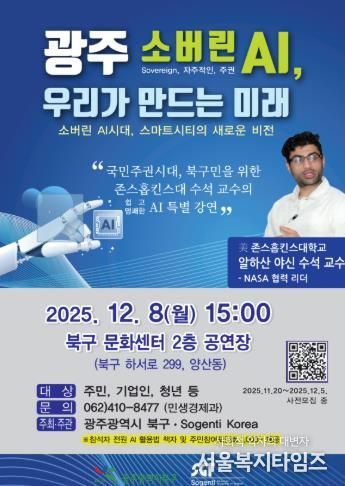 서울복지타임즈 이재연 기자 | 광주광역시 북구는 오는 8일 오후 3시 북구 문화센터에서 알하산 야신 존스홉킨스대 수석교수 초청 AI 특별강연을 개최한다고 3일 밝혔다.