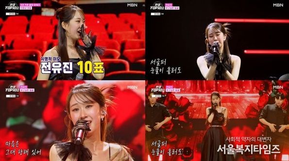 전유진은 지난 2일 밤 방송된 MBN ‘한일톱텐쇼’에 출연했다. 이날 방송은 연말 특집으로 진행됐으며, ‘3대 가문 끝장 어워즈’를 주제로 ‘현역가왕1’, ‘현역가왕2’, ‘현역가왕 재팬’의 주역들이 총출동해 풍성한 무대를 꾸몄다.