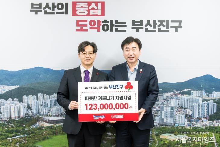부산 사회복지공동모금회는 매년 겨울 기획사업으로 16개 구·군에 난방비를 지원하고 있으며, 올해 부산진구에는 저소득 가구 820세대에 세대당 15만 원씩 총 1억2천3백만 원을 지원한다.