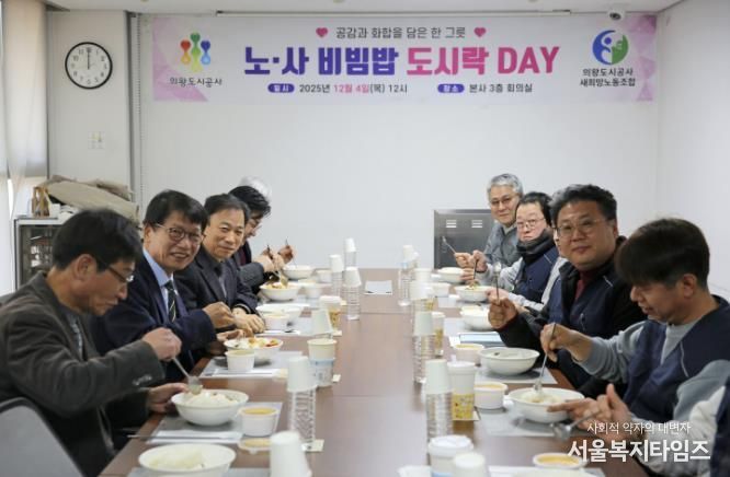 서울복지타임즈 이재연 기자 | 의왕도시공사는 12월 4일 노사 간 협력과 소통을 강화하고 건강한 조직문화 확산을 위한 ‘노·사 비빔밥 도시락데이’ 행사를 개최했다고 밝혔다.