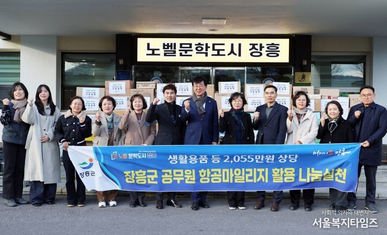 서울복지타임즈 이재연 기자 | 장흥군 공무원 122명이 공적 항공마일리지를 활용해 마련한 20,558,250원 상당의 생필품 197점을 지역 취약계층에 전달했다.