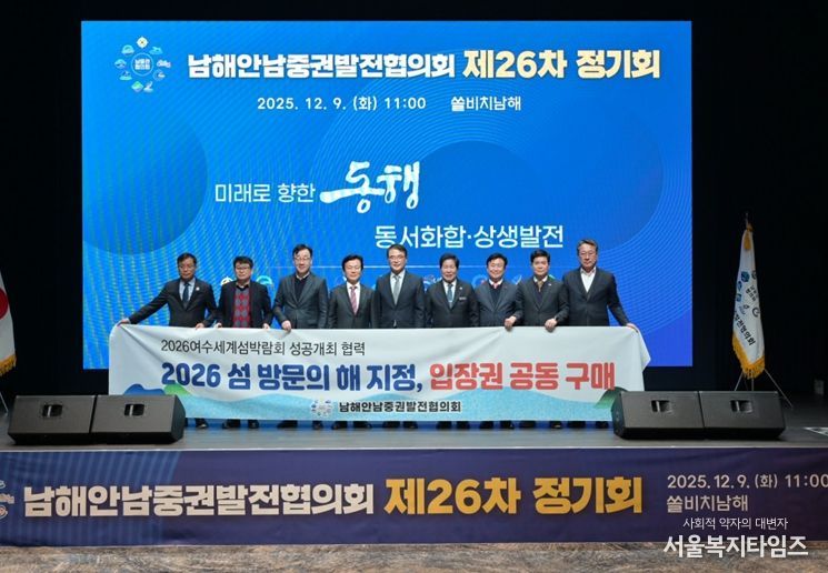 서울복지타임즈 이재연 기자 | 여수시는 9일 경남 남해군 쏠비치남해에서 ‘남해안남중권발전협의회 제26차 정기회’가 개최됐다고 밝혔다.