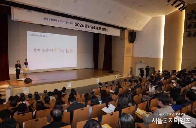 서울복지타임즈 이재연 기자 | 울산광역시교육청은 2026년 ‘함께 성장하며 도약하는 울산교육’을 목표로, ‘평화롭고 따뜻한 교육공동체, 기본에 충실한 맞춤형 공교육, 내일을 준비하는 미래 역량, 모두가 성장하는 교육복지’ 등 4대 역점과제를 추진한다.