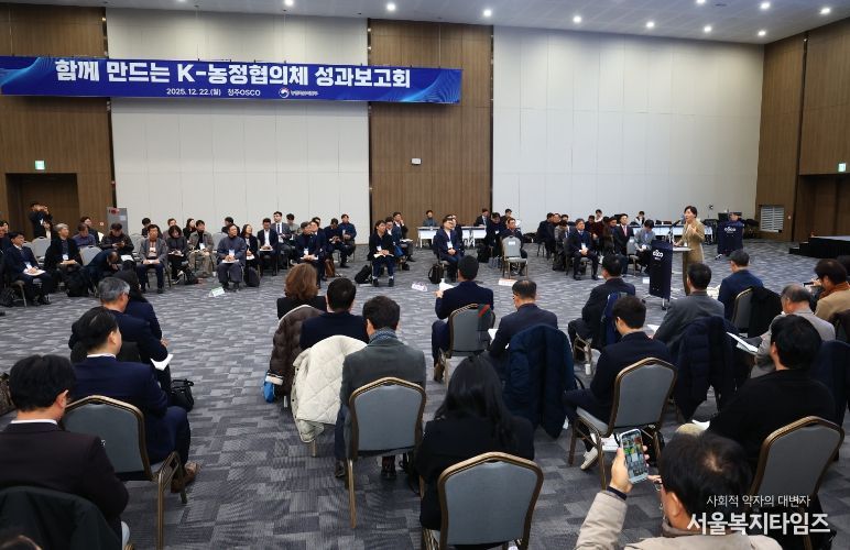서울복지타임즈 이재연 기자 | 농림축산식품부는 12월 22일 오후 청주오스코(OSCO)에서 '함께 만드는 K-농정협의체' 성과보고회를 개최했다. 이번 행사에는 K-농정협의체 공동대표인 송미령 농식품부 장관과 류진호 한국4-H청년농업인연합회 회장을 비롯한 협의체 위원 120여 명과 농어업농어촌특별위원회 김호 위원장을 포함한 관계자 30여 명 등 총 150여 명이 참석했다.