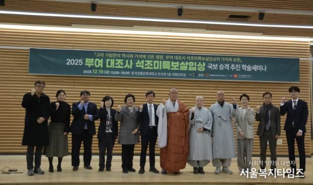 서울복지타임즈 이재연 기자 | 부여군은 부여군과 대한불교조계종 대조사가 주최하고 한국전통문화대학교가 주관한 '부여 대조사 석조미륵보살입상 국보 승격 학술 세미나'를 한국전통문화대학교 온지관에서 성황리에 개최했다고 23일 밝혔다.