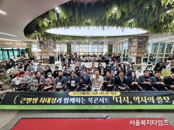 서울복지타임즈 이재연 기자 | 울주선바위도서관이 26일 이순걸 군수와 내빈, 지역주민 등 300여명이 참석한 가운데 공간 리뉴얼 기념행사와 최태성 북콘서트를 개최했다.