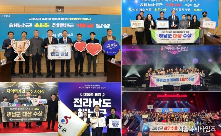 또한 보건복지부 주관 2025년 기초생활보장 지자체 평가에서 최고 영예인 대통령 표창을 수상했고, 좋은 이웃 밝은동네 대상, 우리동네 복지기동대 최우수상 등도 수상하며 따뜻하고 살기좋은 공동체 해남의 모습을 널리 알렸다.
