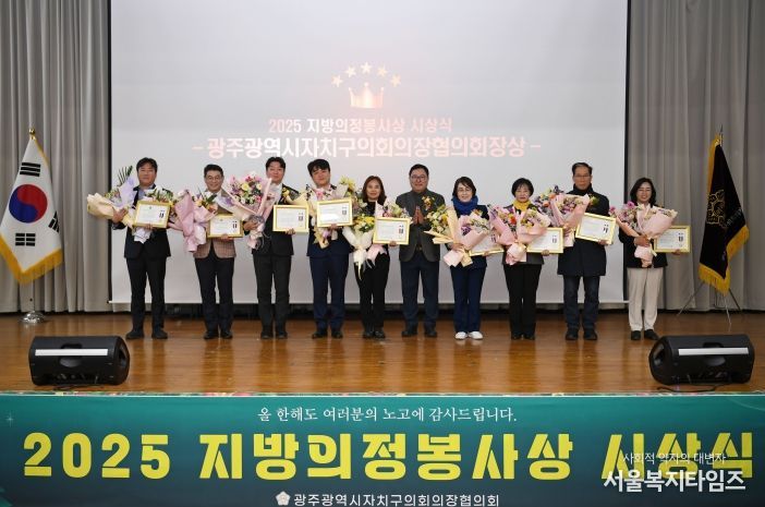 서울복지타임즈 이재연 기자 | 광주광역시자치구의회의장협의회(회장 김명수)가 26일 광산구청 7층 윤상원홀에서 ‘2025년 하반기 지방의정봉사상’ 시상식을 개최했다.