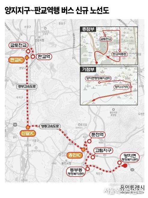 서울복지타임즈 이재연 기자 | 용인 양지지구를 출발해 고림동과 둔전역을 거쳐 성남 판교역까지 운행하는 버스 노선이 확정됐다.