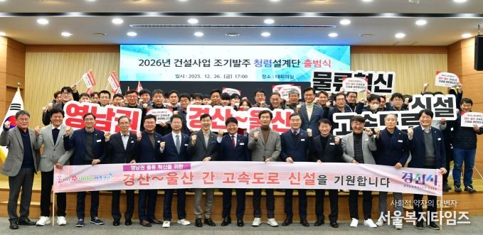 서울복지타임즈 이재연 기자 | 경산시는 26일 시청 대회의실에서 건설사업 관계자 150여 명이 참석한 가운데 『2026년 건설사업 조기 발주 청렴 설계단 출범식』을 개최했다.