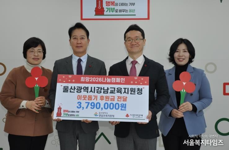 서울복지타임즈 이재연 기자 | 울산 강남교육지원청은 연말연시를 맞아 29일 울산사회복지공동모금회에 이웃사랑 나눔 성금 379만 원을 전달했다.