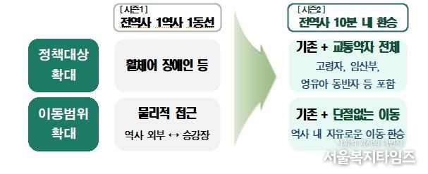 '2단계 전역사 10분내 환승 추진…시민불편 집중 13개역 대상, 교통약자 환승시간 58% 감축'