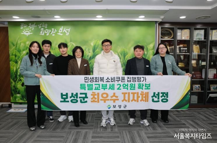 서울복지타임즈 이재연 기자 | 보성군은 행정안전부가 주관한 ‘민생회복 소비쿠폰 집행 우수 지자체 평가’에서 최고 등급인 ‘가등급’에 선정돼 인센티브로 특별교부세 2억 원을 확보했다고 밝혔다.