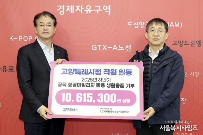 서울복지타임즈 이재연 기자 | 고양특례시는 연말을 맞아 지난 30일 이동환 고양시장과 김진우 고양시덕양행신종합사회복지관장이 참석한 가운데 열린시장실에서 ‘2025년 하반기 공적 항공마일리지 활용 기부물품 전달식’을 가졌다고 밝혔다.