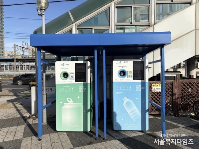 송부종합사회복지관 근방 육교에 겸용(투명페트병, 캔) 무인회수기 1대와 금정역 7번출구에 캔 전용 무인회수기 1대가 새롭게 설치했다.