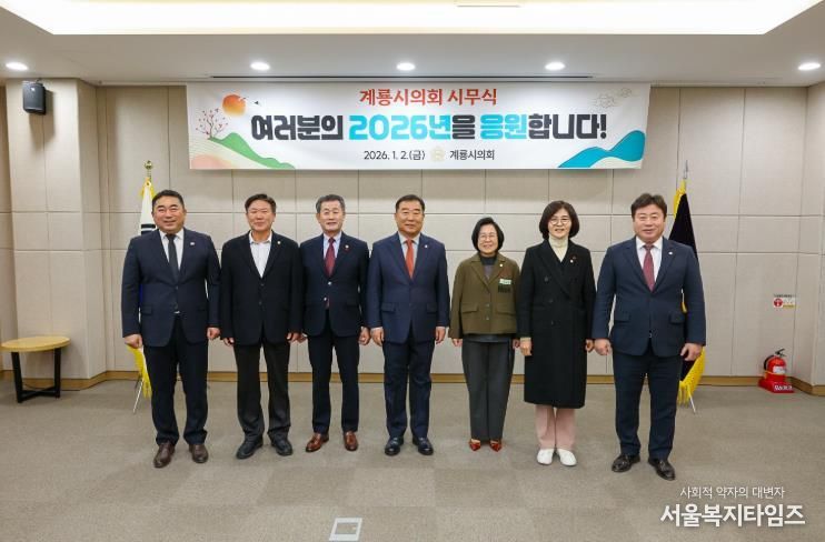 서울복지타임즈 이재연 기자 | 계룡시의회가 2일 다목적회의실에서 2026년 병오년 시무식을 열고, 계룡시의 발전과 시민의 행복을 위한 본격적인 의정 활동에 나섰다.