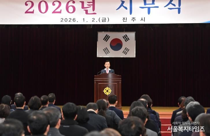 서울복지타임즈 이재연 기자 | 진주시는 2일 시청 시민홀에서 ‘2026년 시무식’을 갖고, 2026년에는 더 높이 도약할 것을 다짐하면서 새해 업무를 본격적으로 시작했다.