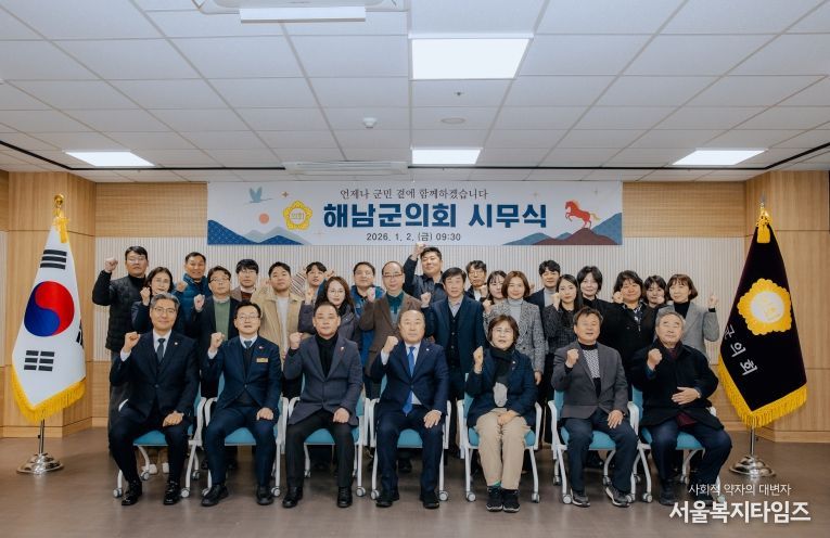 서울복지타임즈 이재연 기자 | 해남군의회는 2일 주민소통실에서 군의원들과 의회사무과 직원들이 참석한 가운데 2026년 병오년(丙午年) 시무식을 열고 본격적인 의정활동을 시작했다.