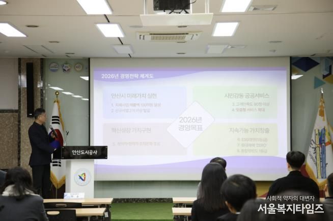 서울복지타임즈 이재연 기자 | 안산도시공사는 5일 2026년 시무식을 열고 시민 중심 서비스 확대를 핵심으로 한 새해 경영목표와 중점 추진 방향을 공유하며 새로운 한 해의 출발을 다짐했다.