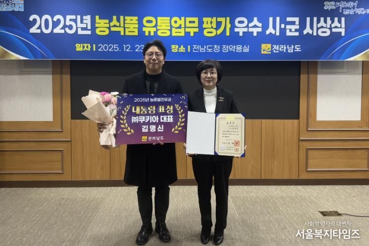 서울복지타임즈 이재연 기자 | 전라남도는 여수의 두부과자 제조업체 ㈜쿠키아 김명신 대표가 지역 농산물 고부가가치화와 청년 일자리 창출 등 공로로 농촌융복합산업 분야 대통령 표창을 받았다고 밝혔다.