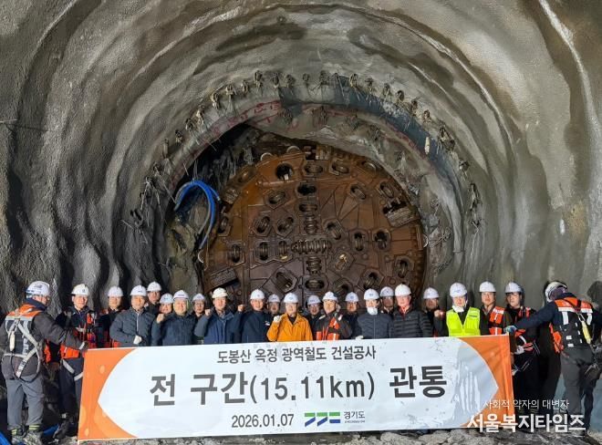 경기도는 2020년 12월 공사착공 이후 약 5년 만에 도봉산~옥정 광역철도 공사구간 전체 터널이 연결되면서 15.11km가 모두 관통됐다고 8일 밝혔다.