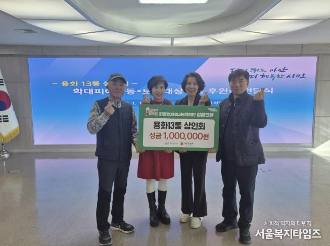 서울복지타임즈 이재연 기자 | 아산시는 용화13통 상인회가 지역 내 학대 피해 및 보호대상을 위해 후원금을 기탁했다고 밝혔다.