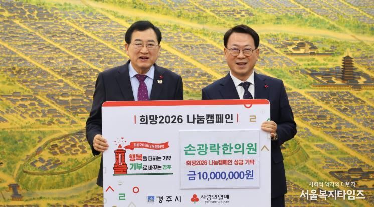 서울복지타임즈 이재연 기자 | 경주시는 14일 시청에서 손광락한의원으로부터 ‘희망2026 나눔캠페인’ 성금 1,000만 원을 기탁받았다고 밝혔다.