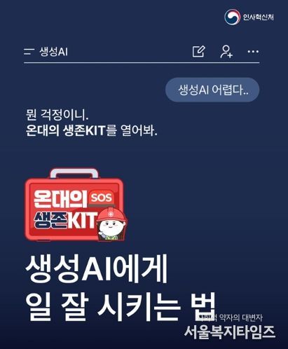 예를 들어 "신입 교육 프로그램 만들어줘"보다는 "인사혁신처 교육 담당자 입장에서 신규 공무원 대상 교육과정을 3일 일정으로 설계해줘"라고 요청해 보세요. 역할을 구체적으로 설정할수록 생성 AI의 답변은 더 정책적이고 실무에 맞게 달라집니다.