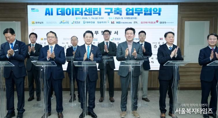 서울복지타임즈 이재연 기자 | 전라남도는 16일 장성군·강진군, 민간 참여 기관과 함께 ‘AI 데이터센터 구축을 위한 업무협약’을 했다.