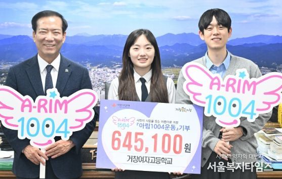 또한, 거창여자고등학교(교장 박기석)는 학생들이 교내 그린카페 활동으로 마련한 수익금을 지역사회에 환원하고자 아림1004운동에 동참했으며 “기후위기 대응을 위한 방안으로 시작된 그린카페 운영 수익금을 아림1004운동에 기부함으로써 학생들이 나눔의 의미를 배우고 지역사회에 기여할 수 있어 기쁘게 생각한다”며 기부의 의미를 전했다.