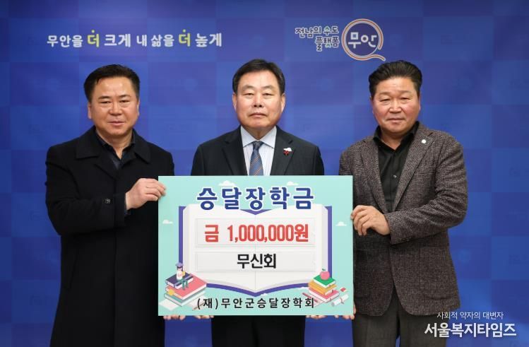 서울복지타임즈 이재연 기자 | 무안군은 지난 1월 19일 무신회 박석현 회장이 지역 인재 육성을 지원하기 위해 (재)무안군승달장학회에 장학금 100만 원을 기탁했다고 밝혔다.