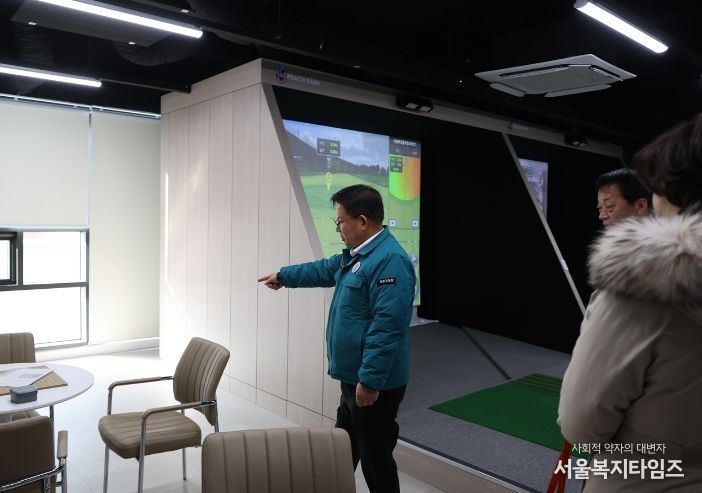 시설 내부에는 스크린 파크골프장을 갖춘 체육시설 공간과 커피·차를 즐길 수 있는 카페형 공간, 바둑·장기·보드게임 등을 할 수 있는 놀이공간 등이 마련돼 있다.