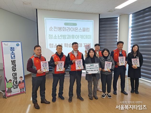 서울복지타임즈 이재연 기자 | 순천봉화라이온스클럽(회장 조동천)은 지난 19일 순천시 청소년문화의집에서 청소년방과후아카데미 초등·중등 청소년들의 학습 지원을 위해 100만 원 상당의 교재를 전달했다.