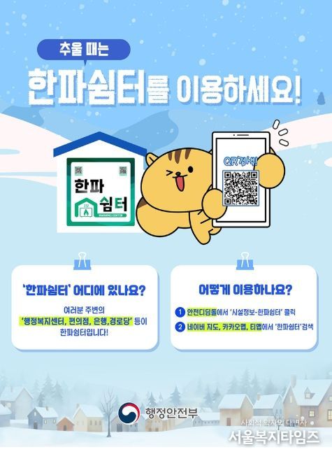 여러분 주변의 '행정복지센터, 편의점, 은행, 경로당' 등이 한파쉼터입니다!