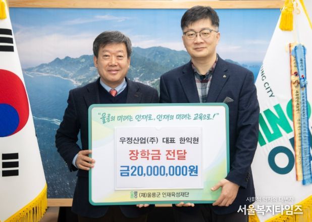 서울복지타임즈 이재연 기자 | 지난 20일 화요일 오전 9시, 울릉군청을 방문한 우정산업(주)는 (재)울릉군인재육성재단(이사장 남한권)에 장학금 2,000만 원을 기탁했다.