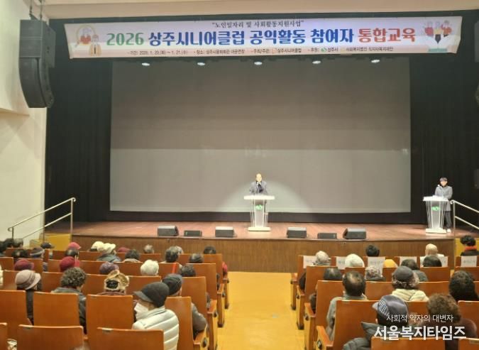 서울복지타임즈 이재연 기자 | 상주시니어클럽은 2026년 노인일자리 및 사회활동지원사업 참여자를 대상으로 1월 20일부터 21일까지 이틀간 상주문화회관에서 통합교육을 실시했다.