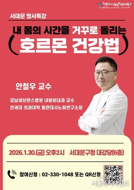 서울복지타임즈 이재연 기자 | 서대문구가 연세대 의대 강남세브란스병원 내분비내과 안철우 교수를 초청해 이달 30일 오후 2시부터 90분간 구청 6층 대강당에서 ‘1월 서대문 명사 특강’을 개최한다.