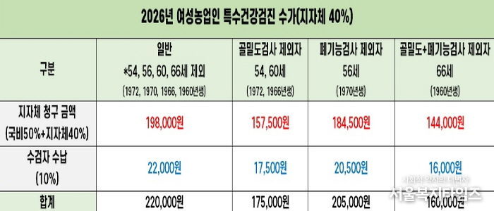 검진 항목은 근골격계‧심혈관계 질환, 농약중독 검사 등 여성농어업인에게 취약한 질환 중심으로 구성된다. 건강 상태에 따라 질환 예방을 위한 상담도 함께 제공한다.