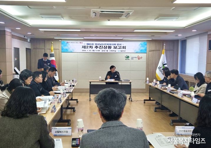 서울복지타임즈 이재연 기자 | 함안군은 지난 22일 제65회 경상남도민체육대회 추진기획단이 군청 2층 소회의실에서 도민체전의 성공적인 개최를 위해 제2차 추진상황 보고회를 개최했다고 밝혔다.