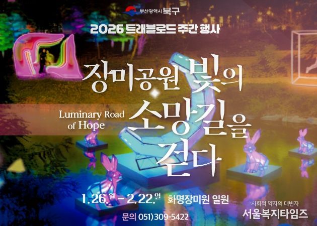 서울복지타임즈 이재연 기자 | 부산 북구는 1월 26일부터 2월 22일까지 화명동 장미공원 일원에서 ‘장미공원, 빛의 소망길을 걷다–북구 트래블로드 주간 행사’를 개최한다고 밝혔다.